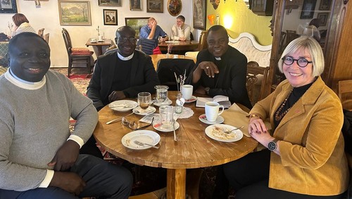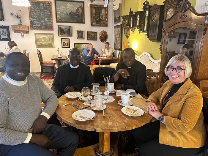 30.10.2025: Bischof Anthony Adaji aus dem kfd- Partnerbistum Idah in Nigeria war unter anderem zu Besuch in Fulda. Ein kurzes Treffen mit Bettina Faber-Ruffing zum Austausch fand im Café Törtchen statt.