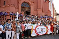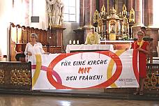 Mit ihrem Banner „Für eine Kirche mit den Frauen“ setzt die kfd ein Zeichen, dass sie sich zusammen mit vielen Frauen und Männern einen zukünftigen Weg der Kirche wünschen, den sie mit den Frauen geht.
