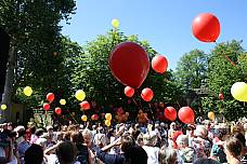 In der Erinnerung an eine eindrückliche Geburtstagsfeier wird auch bleiben, dass die Gäste vor dem Maritim in einer gemeinsamen Aktion Luftballons auf die Reise schickten. Bei strahlend blauem Himmel konnten die bunten Ballons lange verfolgt werden.