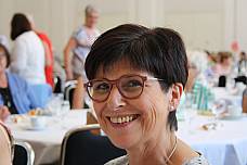 Des Weiteren deutete Frau Faber-Ruffing in ihrer Begrüßungsrede das Motto des Tages. Sie betonte, wie wichtig es für einen Verband sei, sich Zeit zu nehmen, um miteinander zu feiern, zu essen und zu lachen. Auch die Ordnung, gemeinsam an einem runden Tisch zu sitzen ist richtungsweisend für das Miteinander-Kirche-sein. Alle begegnen sich auf Augenhöhe, sitzen in gleicher Entfernung zu einer gemeinsamen Mitte. Der heute noch übliche Gruß „Mahlzeit“ unter Kollegen zur Mittagszeit bezieht sich letzten Ende auf den Wunsch, dass das Essen von Gott gesegnet sein möge.